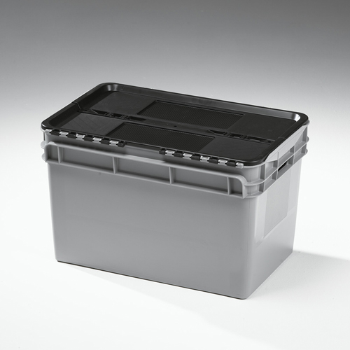 60 Liter Kiste grau, Deckel schwarz